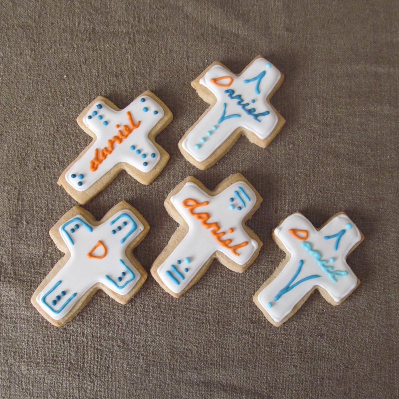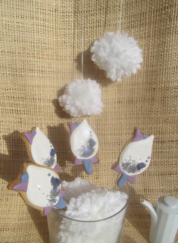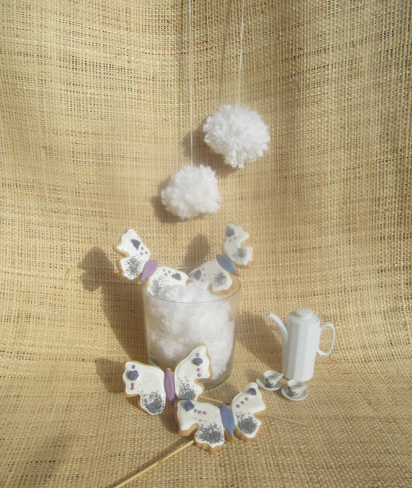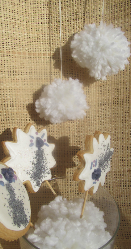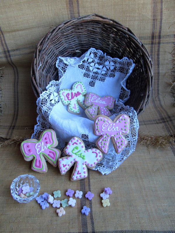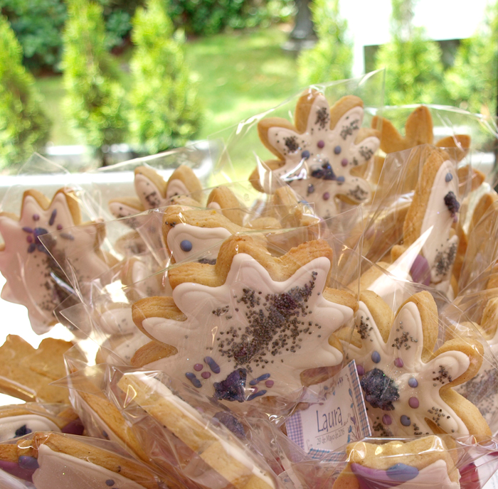 En esta ocasión y dado que mi prima ya tenia encargadas unas galletas de niña de comunión, me dio cancha libre para decorarlas como me pareciese. Tenia yo desde hace tiempo ganas de probar a decorar con violetas escarchadas y semillas de amapola, estas galletas decoradas minimalistas fueron la ocasión ideal para dar rienda suelta a mi imaginación. También les añadí un toque de purpurina, algo que las niñas de esas edades adoran.