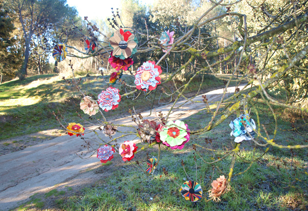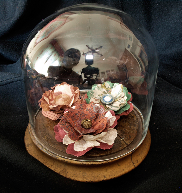 Me gusta hacer flores de tela, combinar las telas, buscar los botones que las acompañan, integrarlas en esculturas o simplemente añadirles un broche y utilizarlas como complemento. Me recuerdan también a tiempos pasados, a tiempos más sencillos, donde una simple flor de tela era «El complemento», algo que se guardaba entre papeles de seda y a lo que se acudía a la hora de conformar el siguiente modelo para el próximo evento, se intercambiaban entre familiares para lucir siempre diferentes.