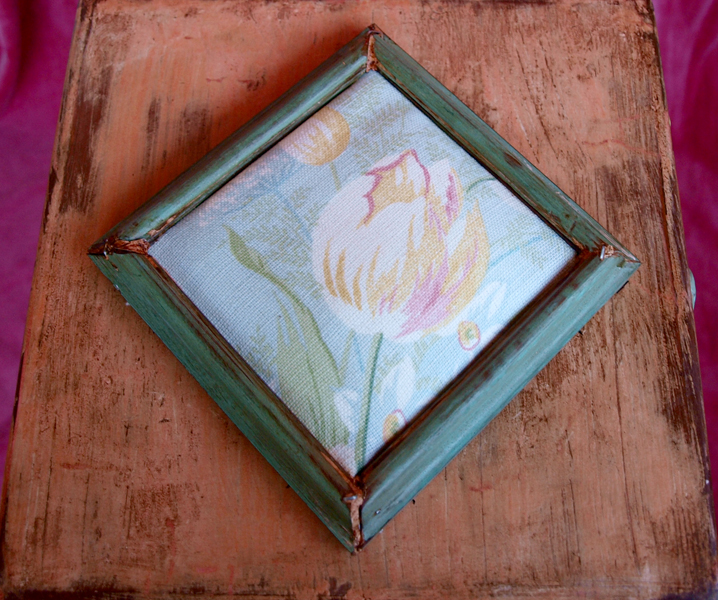Tras mezclar la cera normal la amarilla de toda la vida, con el tinte de madera lo extendi por los pedazos del costurero vintage reciclado hasta conseguir ese tono de envejecido que tanto me gusta y tan característico de este tipo de trabajos.