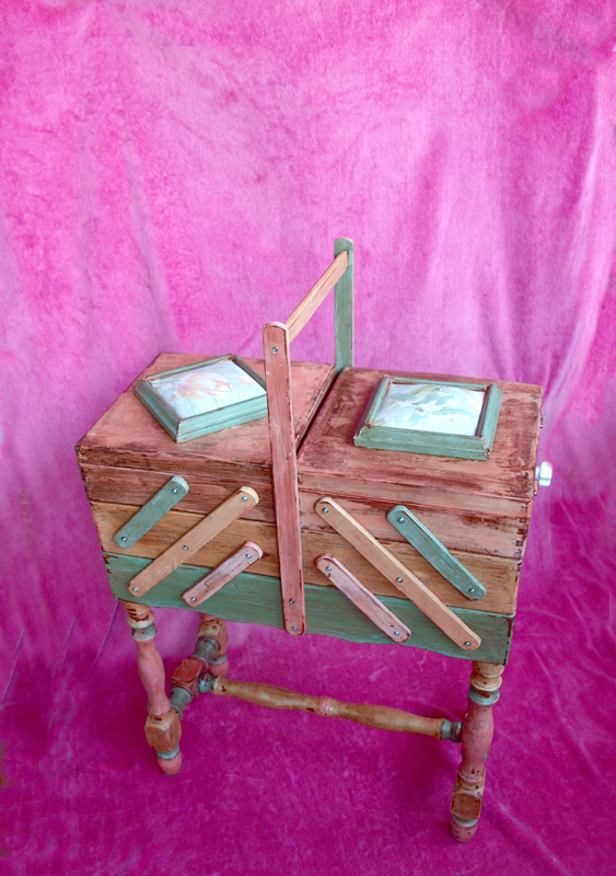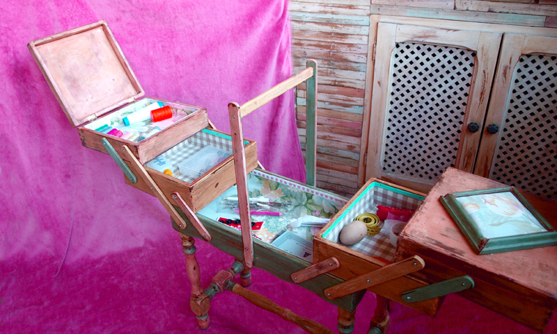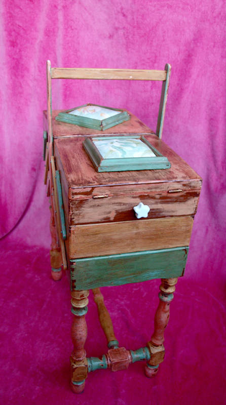Yo tenia un costurero, que un día me encontré descuartizado al ir a utilizarlo. decidí entonces, transformar todo ese amasijo de maderas desvencijadas en un costurero vintage reciclado.