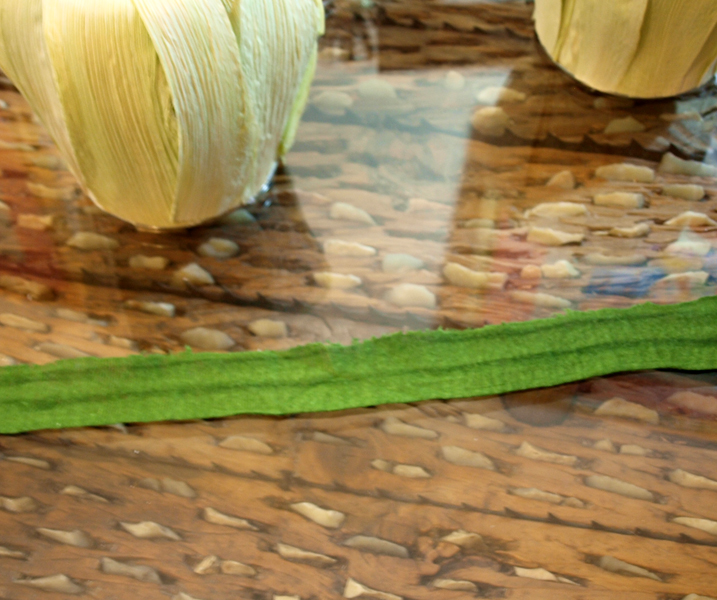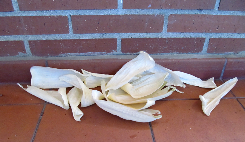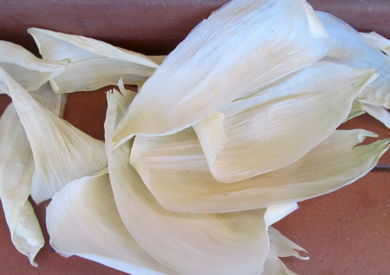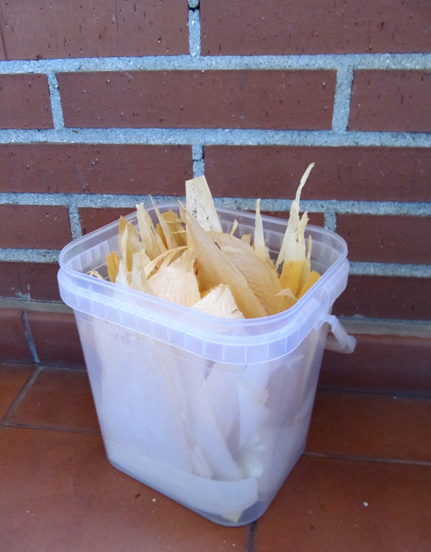 ¿Y por qué me ha dado por experimentar con las hojas de maíz?. Muy sencillo. En la casa de mi abuela había un maizal donde jugábamos de niños. Muchas veces nos mandaban a recoger las panollas (mazorcas), para cenar. Por eso cuando veo en alguna tienda mazorcas frescas en seguida las compro. Y si, guardo las hojas. En algunos países de Centroamérica elaboran artesanía con ellas y me parece un material muy versátil y maleable que aporta un resultado vistoso.